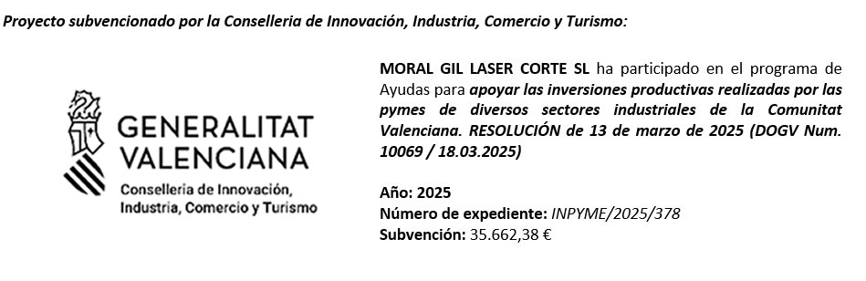 MORAL GIL Láser Corte, S.L., especializada en ofrecer soluciones de corte, y plegado, con tecnología láser fibra de última generación. Con un equipo altamente cualificado y maquinaria avanzada, garantiza acabados impecables y personalizados para cada proyecto, asegurando la máxima precisión en todo momento. La empresa trabaja con una amplia gama de materiales, acero inoxidable, acero al carbono, aluminio, latón, adaptándose a las necesidades específicas de cada cliente. Además, cuenta con una máquina plegadora, lijado, soldadura de pernos lo que le permite ofrecer soluciones completas para proyectos más complejos, siempre con resultados de alta precisión. MORAL GIL Láser Corte se compromete a proporcionar un servicio rápido, preciso y de alta calidad, destacándose por su atención al cliente profesional y cercanía.